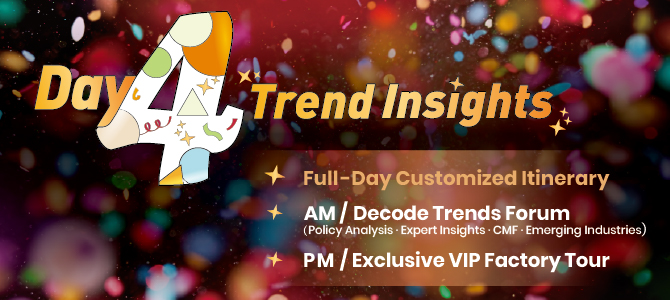 Grand Finale on CHINAPLAS Day 4! Join us for the full-day customized itinerary: Attend the “Decode Trends Forum", followed by an exclusive VIP Factory Tour in the afternoon. Don’t miss the show!